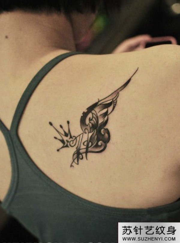 皇冠翅膀肩部纹身_翅膀纹身图案大全_纹身图吧