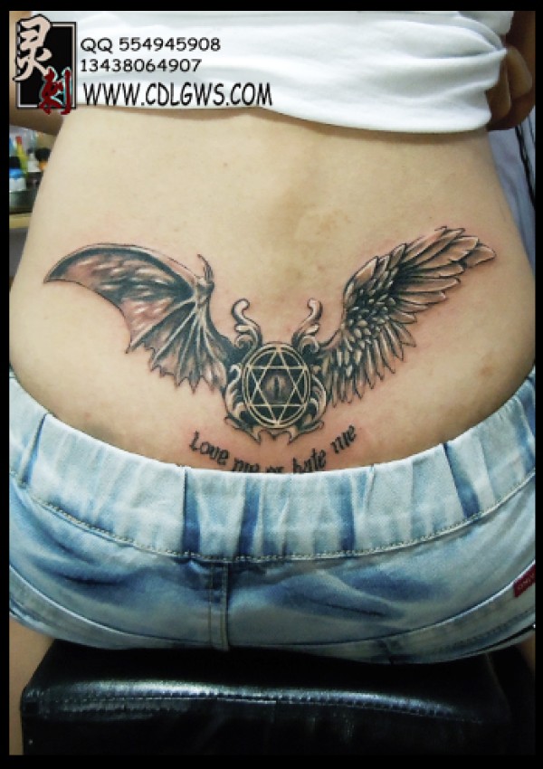 腰部的文字翅膀纹身图案_翅膀纹身图案大全_纹身图吧