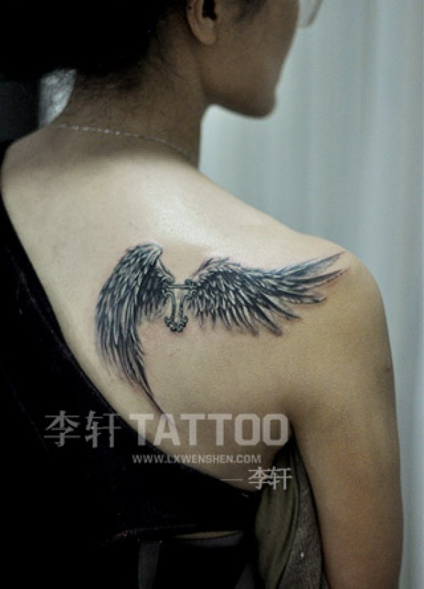 时尚的肩部翅膀纹身图案图片_翅膀纹身图案大全_纹身图吧