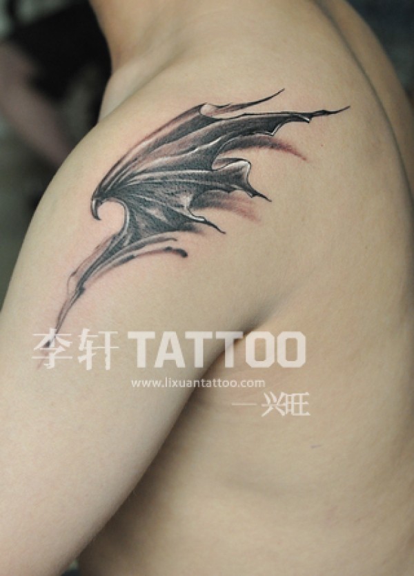 时尚的肩部翅膀纹身图案图片_翅膀纹身图案大全_纹身图吧