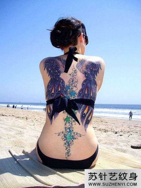 性感比基尼美女背部唯美翅膀纹身_翅膀纹身图案大全_纹身图吧