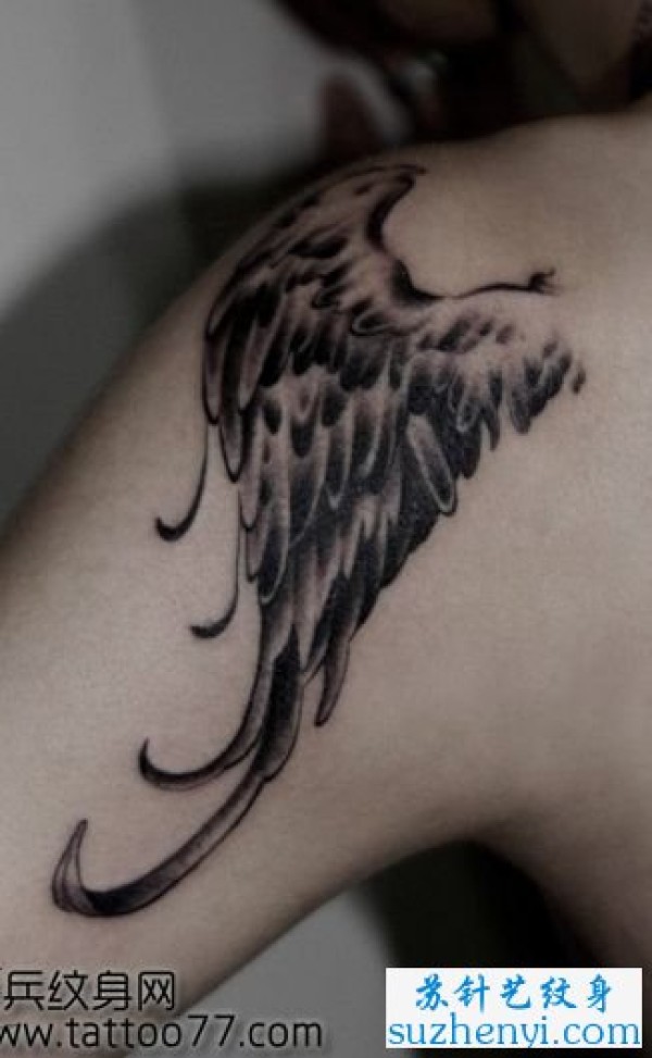 时尚的肩部翅膀纹身图案图片_翅膀纹身图案大全_纹身图吧