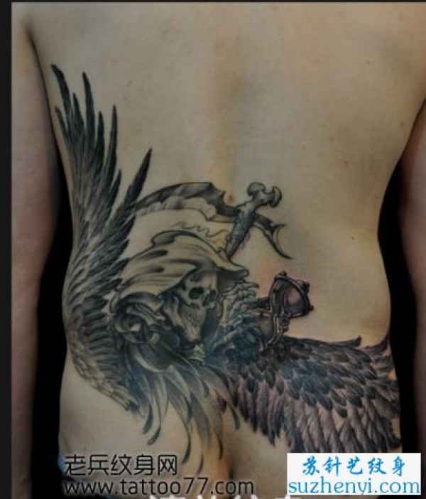 背部死神翅膀纹身图案_翅膀纹身图案大全_纹身图吧