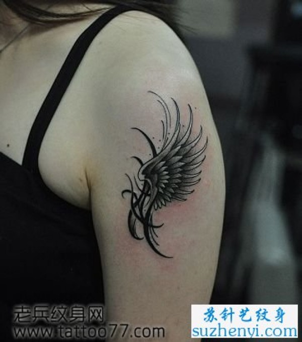 时尚的肩部翅膀纹身图案图片_翅膀纹身图案大全_纹身图吧