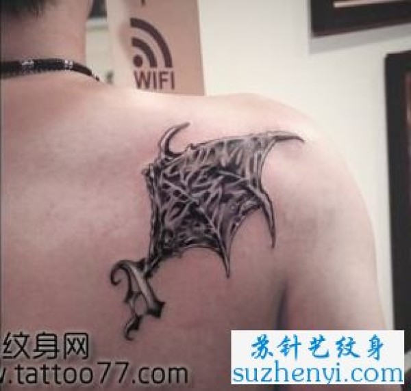 背部流行时尚的恶魔翅膀纹身图片_翅膀纹身图案大全_纹身图吧