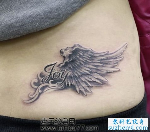 腰部的文字翅膀纹身图案_翅膀纹身图案大全_纹身图吧