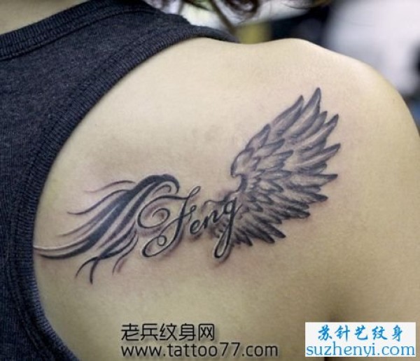 腰部的文字翅膀纹身图案_翅膀纹身图案大全_纹身图吧