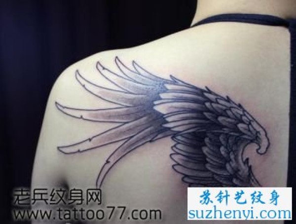时尚的肩部翅膀纹身图案图片_翅膀纹身图案大全_纹身图吧