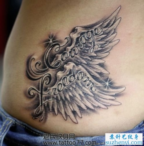 腰部的文字翅膀纹身图案_翅膀纹身图案大全_纹身图吧