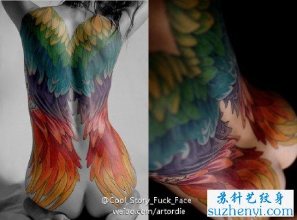 翅膀纹身满背彩色翅膀纹身图案纹身图片_翅膀纹身图案大全_纹身图吧