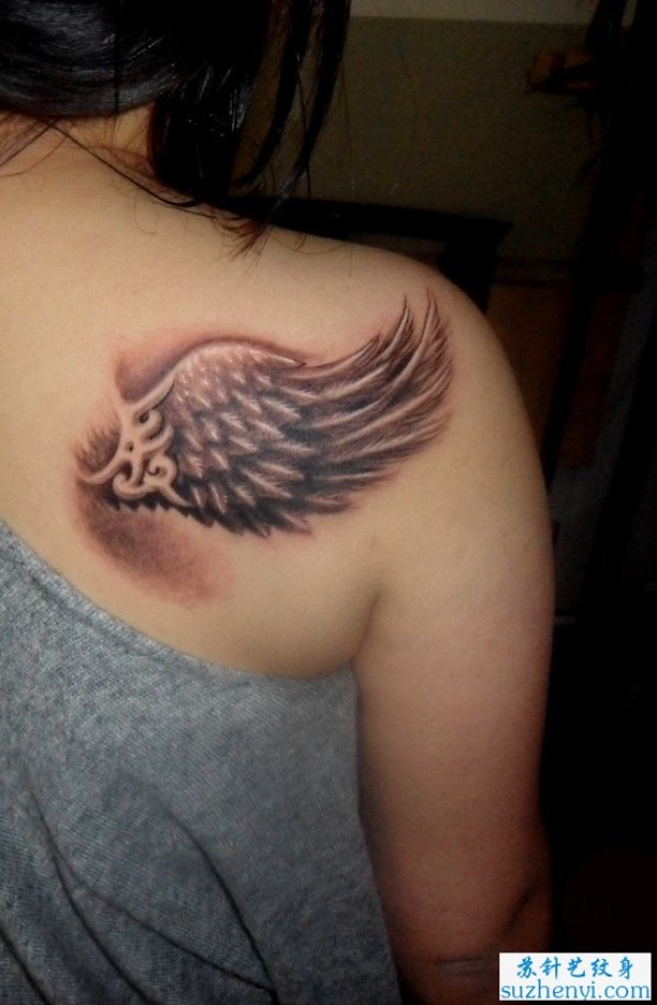 时尚的肩部翅膀纹身图案图片_翅膀纹身图案大全_纹身图吧