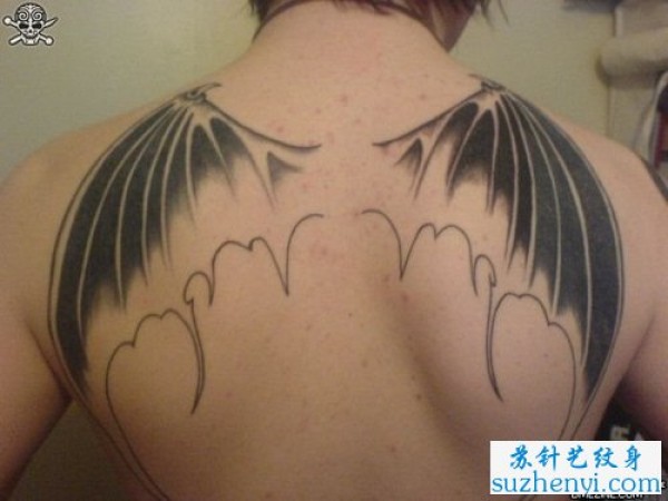 背部流行时尚的恶魔翅膀纹身图片_翅膀纹身图案大全_纹身图吧