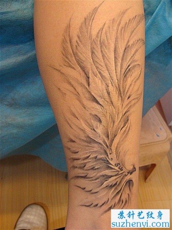 翅膀纹身经典时尚腿部翅膀纹身图案纹身_翅膀纹身图案大全_纹身图吧