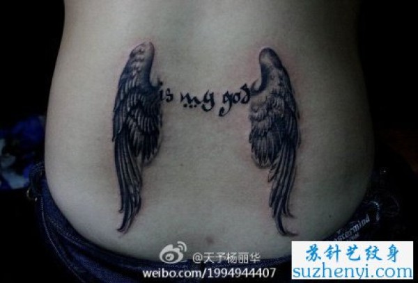 腰部的文字翅膀纹身图案_翅膀纹身图案大全_纹身图吧