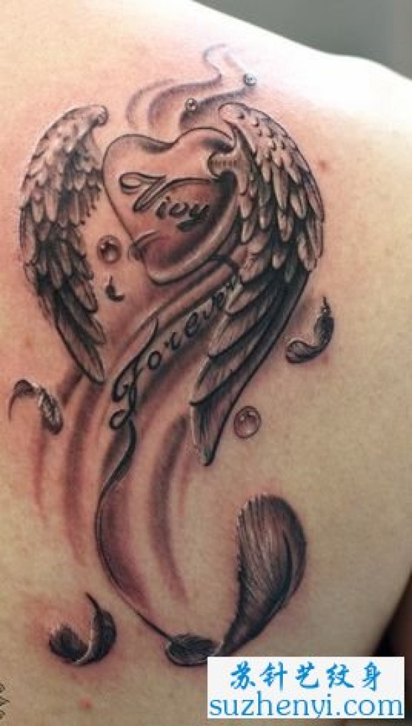 女性纹身美女后背爱心翅膀纹身图案_翅膀纹身图案大全_纹身图吧