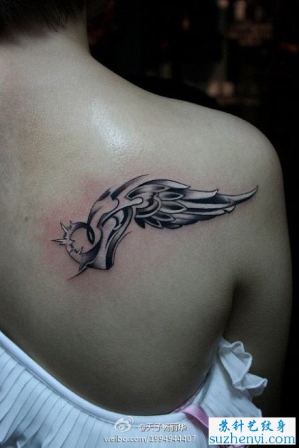 时尚的肩部翅膀纹身图案图片_翅膀纹身图案大全_纹身图吧