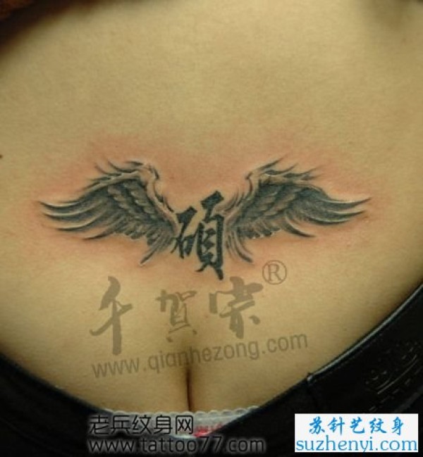 腰部的文字翅膀纹身图案_翅膀纹身图案大全_纹身图吧