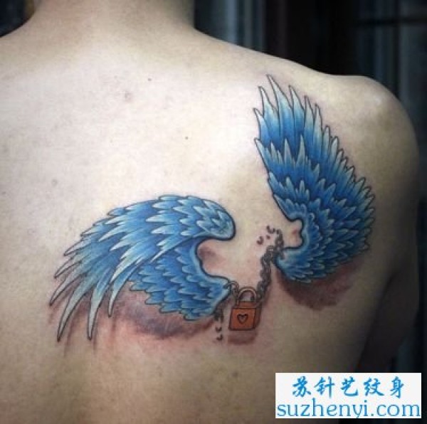 男生肩背彩色翅膀纹身图案_翅膀纹身图案大全_纹身图吧