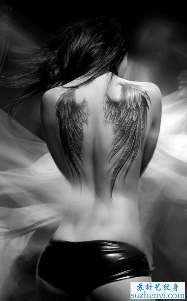 最时尚流行的美女背部翅膀纹身_翅膀纹身图案大全_纹身图吧
