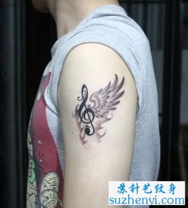手臂翅膀与音符纹身图案_翅膀纹身图案大全_纹身图吧
