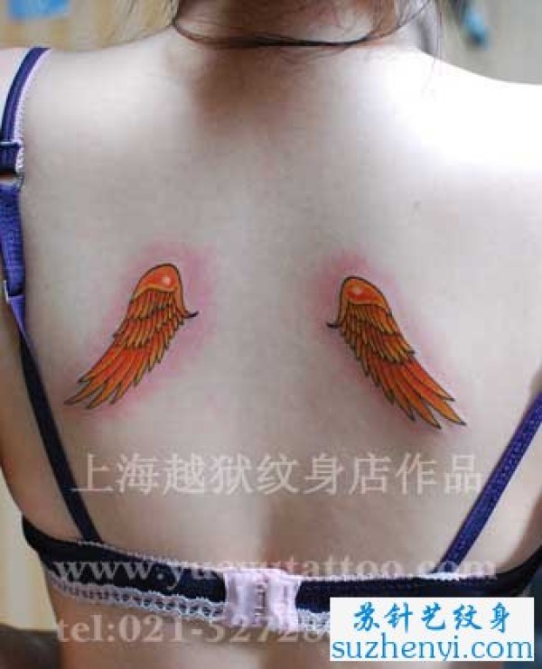 背部漂亮的彩色小翅膀纹身图案_翅膀纹身图案大全_纹身图吧