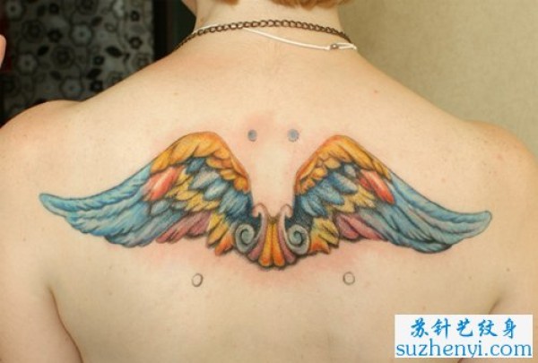 美女背部彩色翅膀纹身图案_翅膀纹身图案大全_纹身图吧