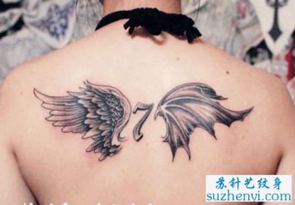 背部流行时尚的恶魔翅膀纹身图片_翅膀纹身图案大全_纹身图吧