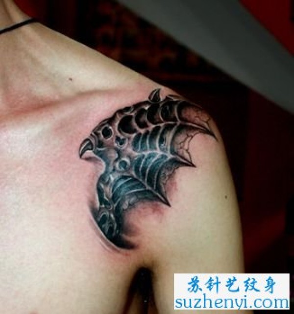 时尚的肩部翅膀纹身图案图片_翅膀纹身图案大全_纹身图吧
