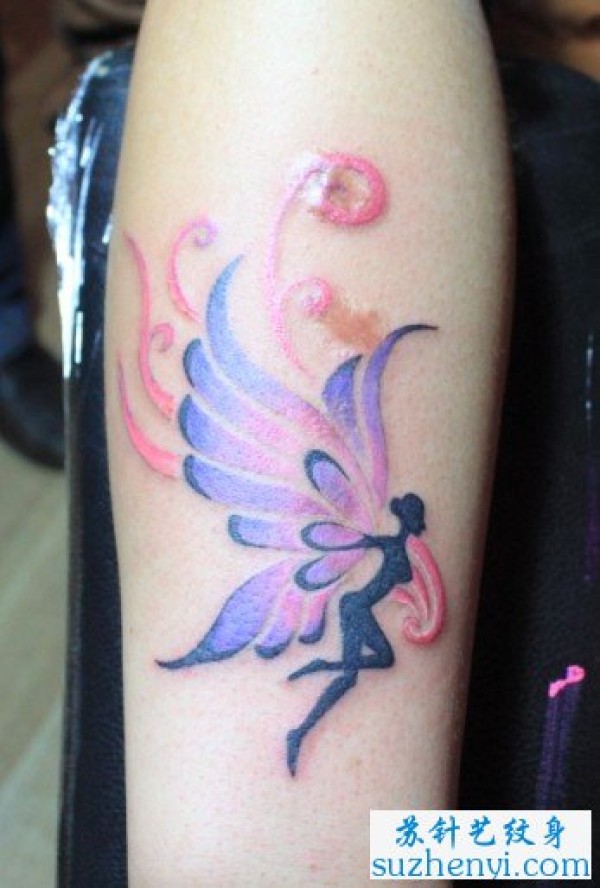 手臂色精灵翅膀纹身_翅膀纹身图案大全_纹身图吧
