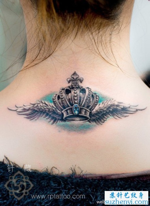 写实的翅膀与皇冠纹身_翅膀纹身图案大全_纹身图吧
