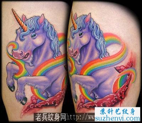 彩色独角兽翅膀彩虹纹身图案_翅膀纹身图案大全_纹身图吧