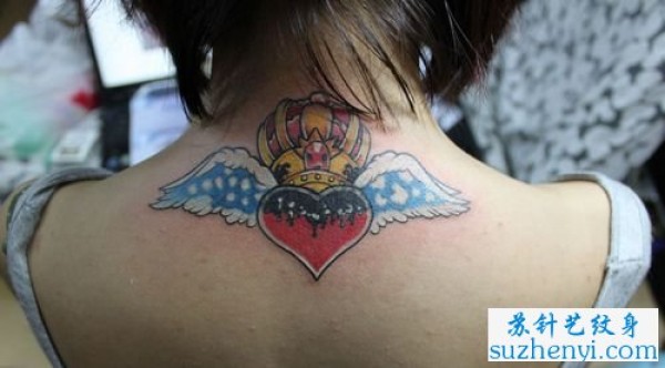 背部爱心翅膀皇冠纹身_翅膀纹身图案大全_纹身图吧
