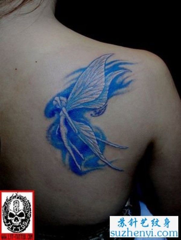 肩部彩色精灵翅膀纹身_翅膀纹身图案大全_纹身图吧