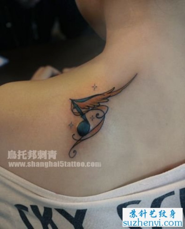 肩部音符翅膀纹身_翅膀纹身图案大全_纹身图吧