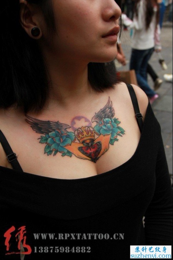 胸前爱心皇冠翅膀纹身_翅膀纹身图案大全_纹身图吧