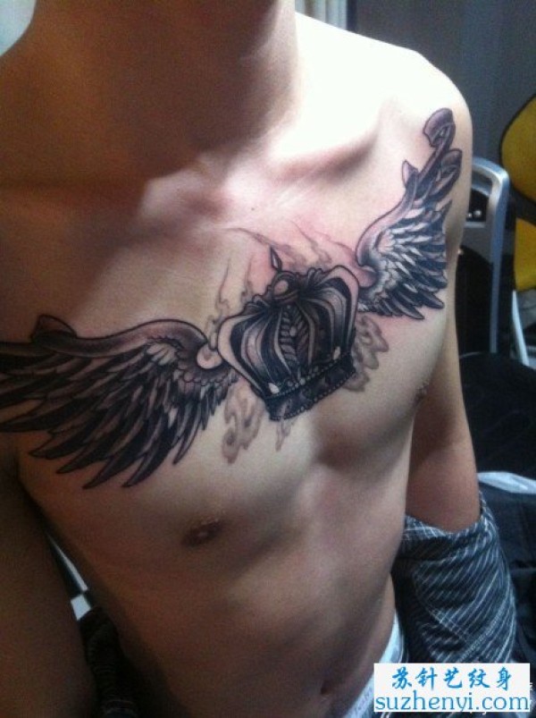 前胸皇冠翅膀纹身_翅膀纹身图案大全_纹身图吧