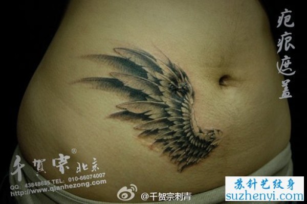 腹部疤痕遮盖翅膀纹身_翅膀纹身图案大全_纹身图吧