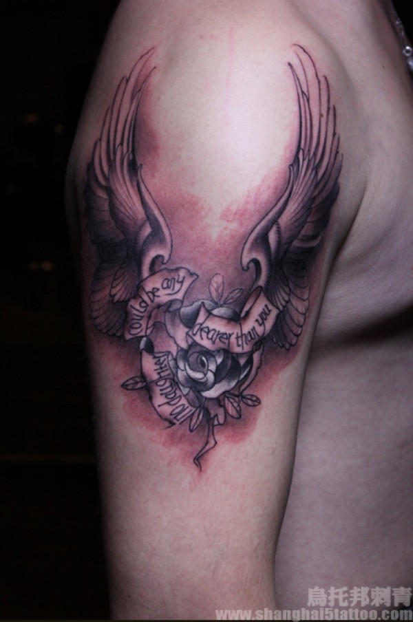 时尚的肩部翅膀纹身图案图片_翅膀纹身图案大全_纹身图吧