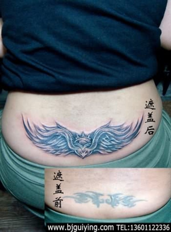 腰部翅膀纹身图案纹身遮盖修改_翅膀纹身图案大全_纹身图吧
