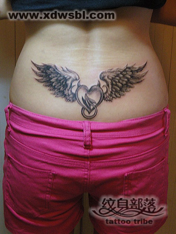 腰部的文字翅膀纹身图案_翅膀纹身图案大全_纹身图吧