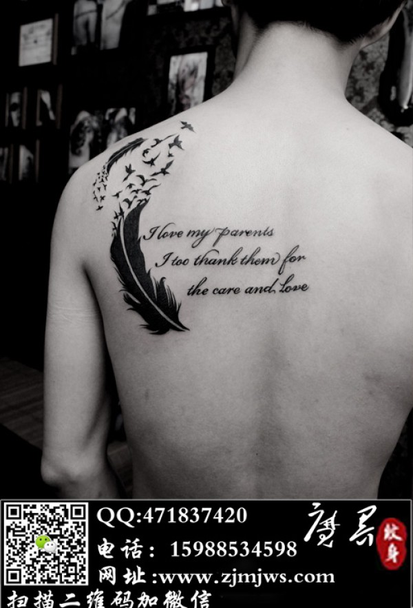 后背翅膀羽毛小鸟纹身_翅膀纹身图案大全_纹身图吧