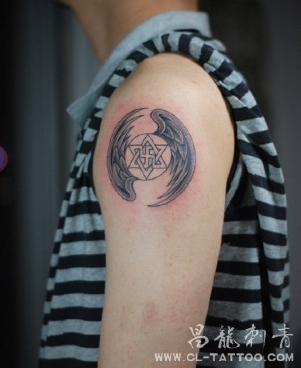 六芒星与翅膀_男士小图_翅膀纹身图案大全_纹身图吧