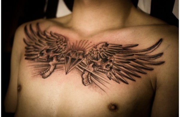 胸前翅膀钻石纹身_翅膀纹身图案大全_纹身图吧