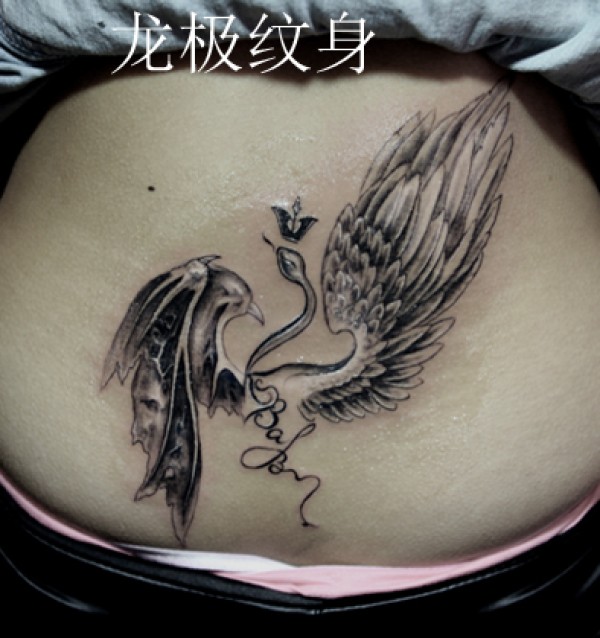 腰部的文字翅膀纹身图案_翅膀纹身图案大全_纹身图吧