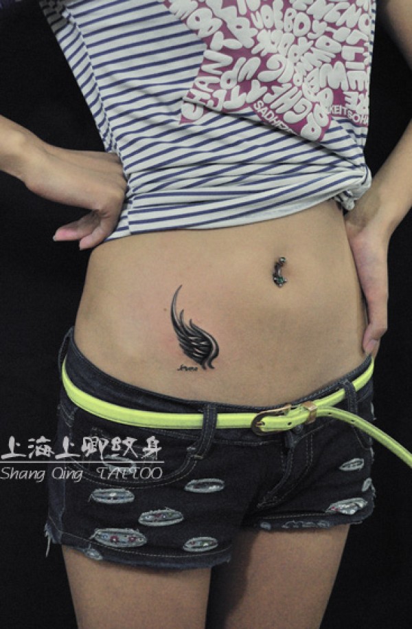 腰部的文字翅膀纹身图案_翅膀纹身图案大全_纹身图吧