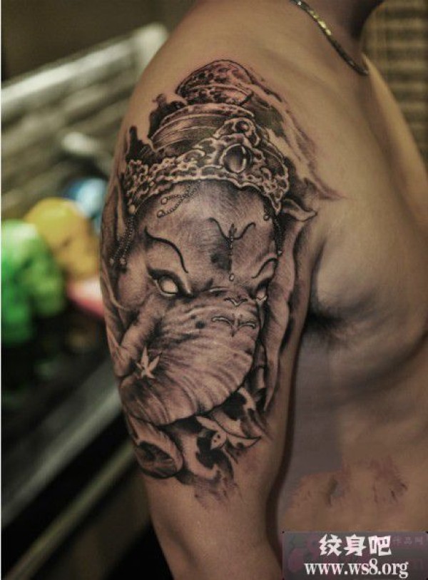 传统象神霸气手臂刺青图案_传统纹身图案大全_纹身图吧