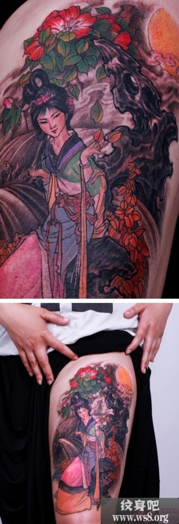 中国传统仕女图腿部纹身图案_传统纹身图案大全_纹身图吧