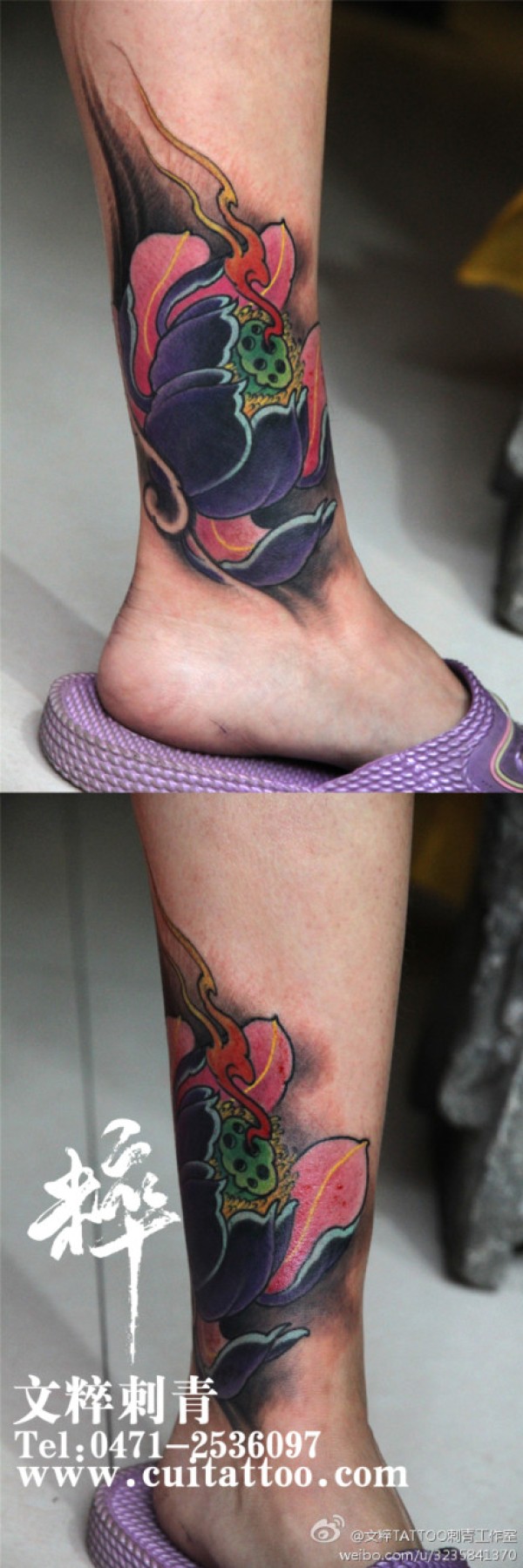 腿部精美好看的传统莲花纹身图案_传统纹身图案大全_纹身图吧