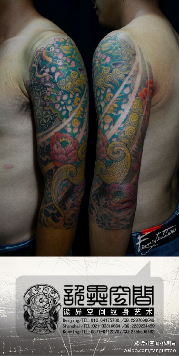 手臂时尚经典的传统唐狮子纹身图案_传统纹身图案大全_纹身图吧