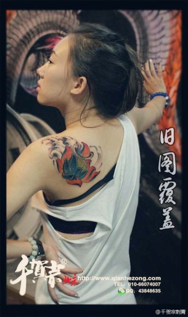 美女肩背潮流唯美的传统莲花纹身图案_传统纹身图案大全_纹身图吧